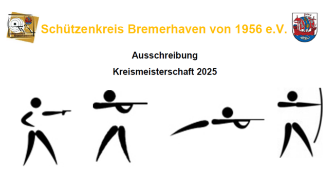 Hallo liebe Schützen, wir möchten Euch herzlich zu unserer Kreismeisterschaft 2025  „Kugel und Bogen“ einladen. Die Kreismeisterschaft 2025 “ Kugel“ wird gemeinsam mit dem Schützenkreis-Wesermünde-Nord e.V. durchgeführt bei getrennter Wertung.…